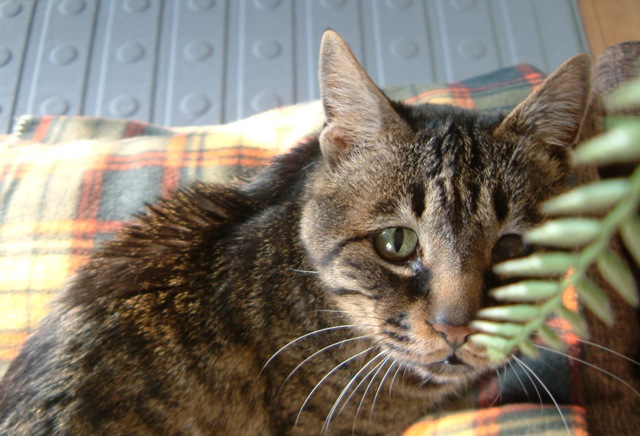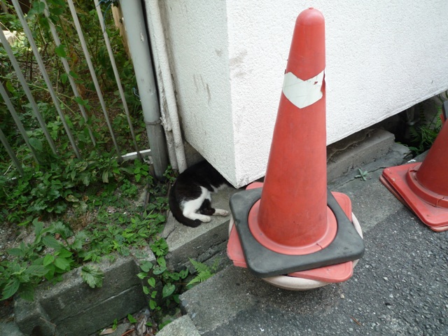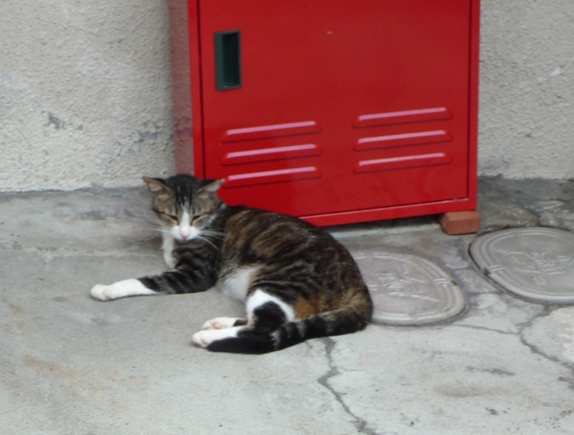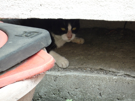 その小窓から覗いて撮ったニャンコ。