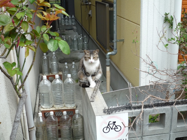 水入りペットボトルは、猫避け効果は殆どなし、と