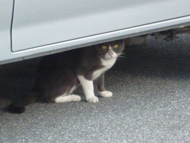 車の下に、