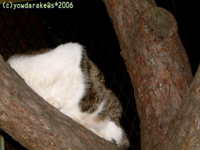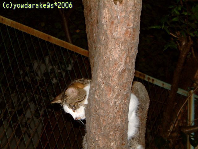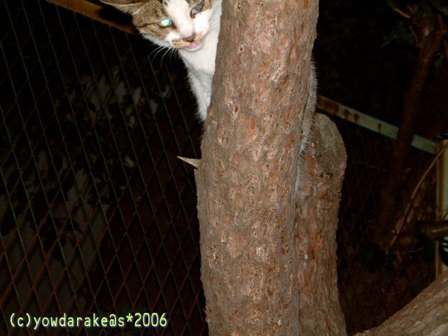 花火や、木のところに登ってます