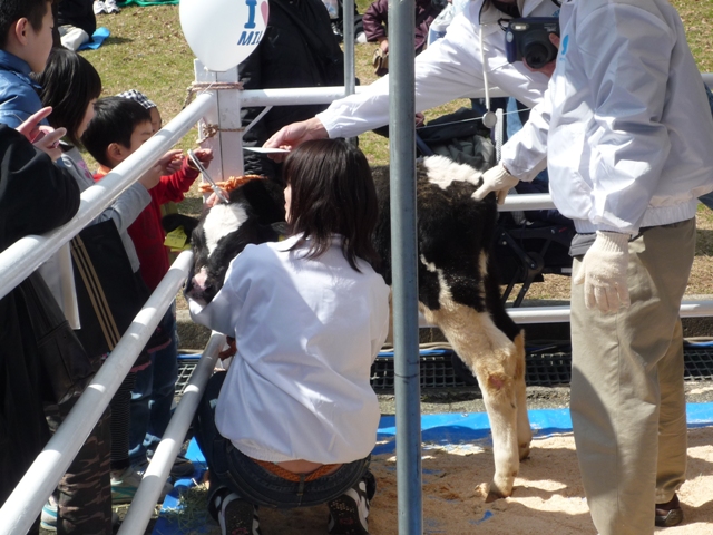 子牛の心音を聞くというイベントをやっていて、