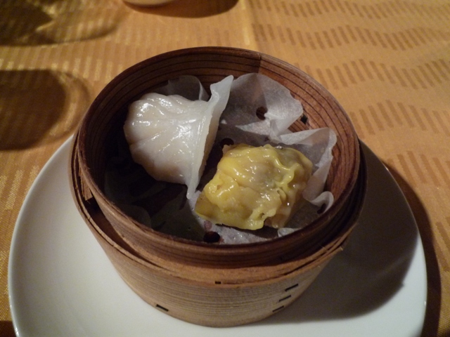 6品目、点心2種。海老入りシュウマイと蒸し海老餃子