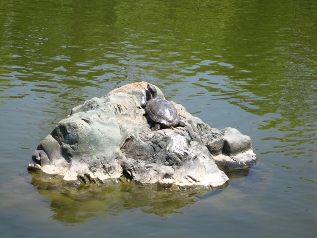 亀ちんが日向ぼっこ(甲羅干し)中。